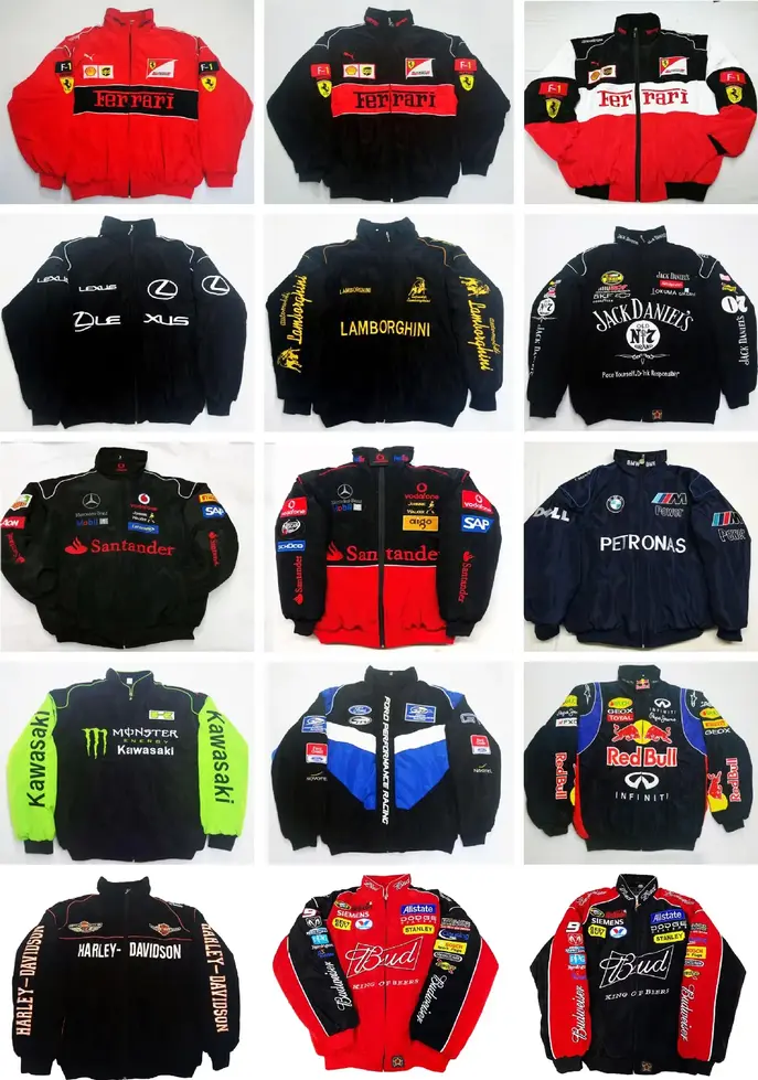 - Flame Details: The red and yellow flames on the sleeves are a dynamic accent that emphasizes the jacket's racing flair and adds an edgy touch.